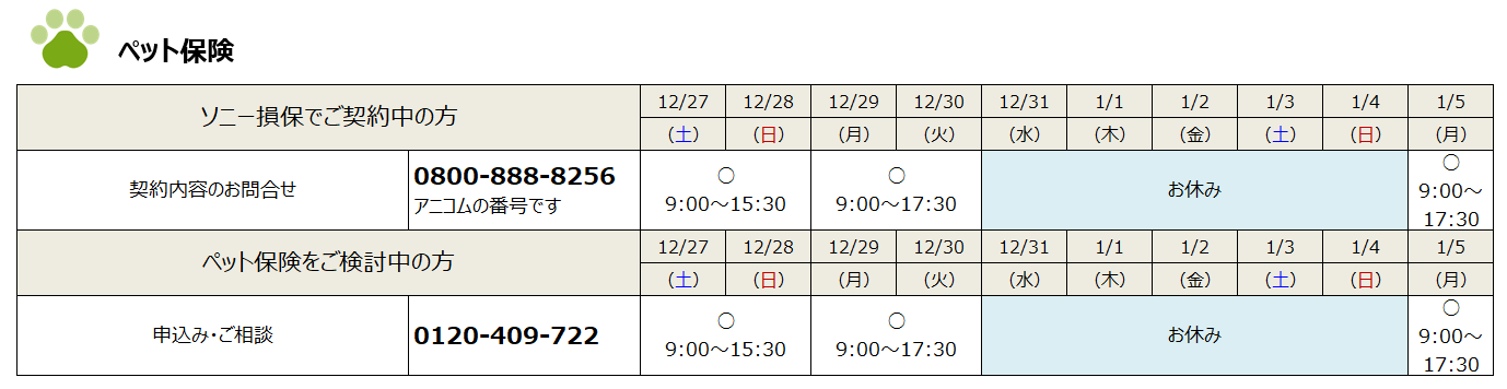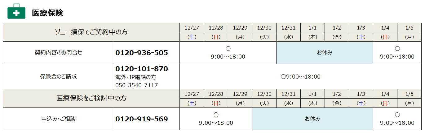 ソニー損保トップ > ソニー損保からのお知らせ > 年末年始の営業について