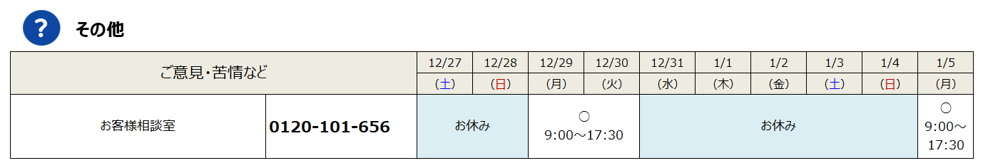 2026年1月5日は、各窓口のお電話が混み合うことが予想されます。ご契約内容のご相談等がございましたら、お早めのご連絡をおすすめします。ウェブサイトでの受付が可能な手続きもありますので、ぜひご利用ください。
